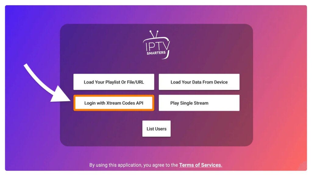 Once the installation is complete, start the IPTV Smarters program. Click Add New User and select Login with Xtream Codes API. Add your login data (username, password and Portal URL) for your IPTV service.
