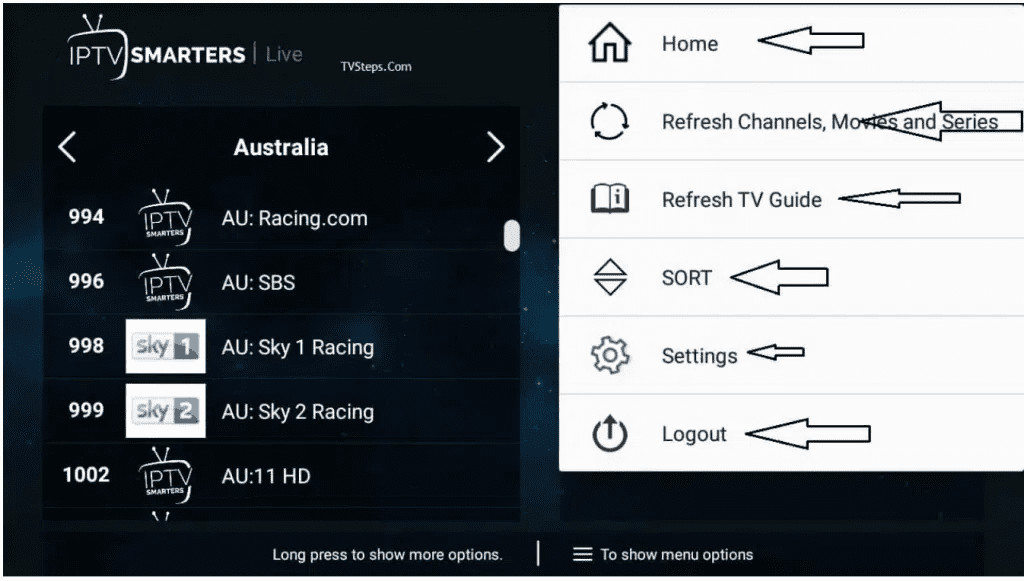 GSE Smart IPTV is known for being full of features and cost-effective. It only costs $4.99 on the Apple TV App Store. It works with many IPTV formats and services, such as M3U and PLEX.